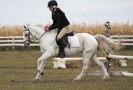 Starlight's conformation and athleticism is a testament to her good breeding. She is super athletic and sound. Starlight has plenty of energy to canter all day. When she arrived from California, Minnesota was a big change! She'd never seen an indoor arena, let alone snow. Starlight has settled in nicely. She loves kids and all the attention she gets from her riders. Even though she's a California girl, she turns into a white teddy bear in the winter.